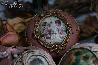 OdpowiedzUsuńZawsze mi się wydawało, że "stary" róż nie pasuje do BN. Zdziwiłam się bardzo, gdy jedyna bombka w klimacie takim jak Twoje i też z szarymi aniołkami natychmiast znalazła nabywcę. :)